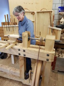 Hier noch an einer Fussanbetriebenen Drechselbank